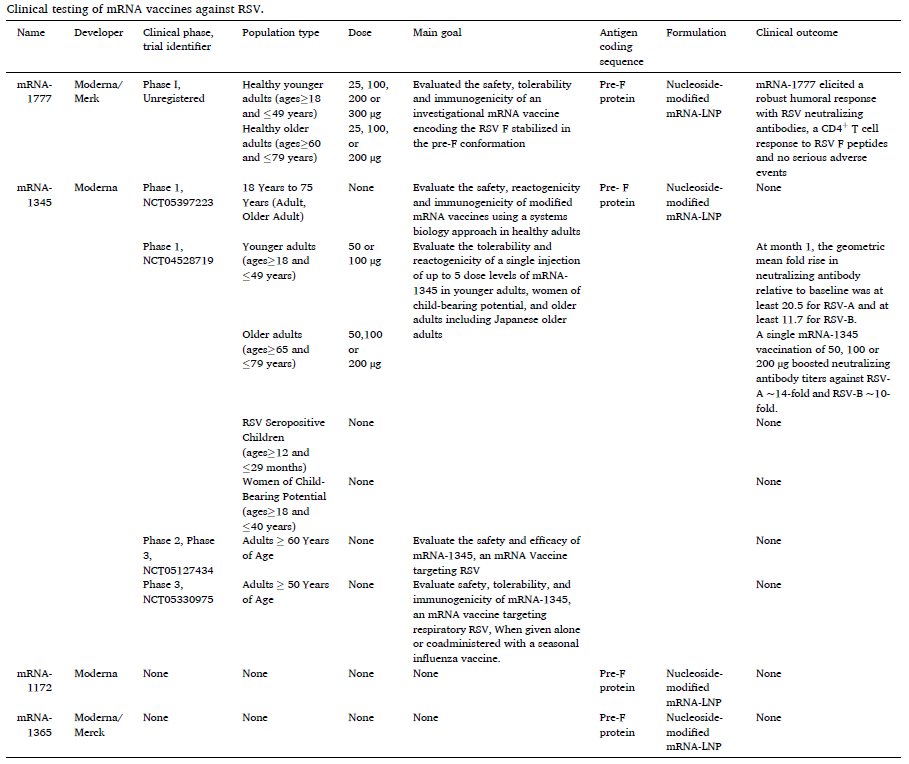 圖5 RSV mRNA疫苗臨床進(jìn)展[1]