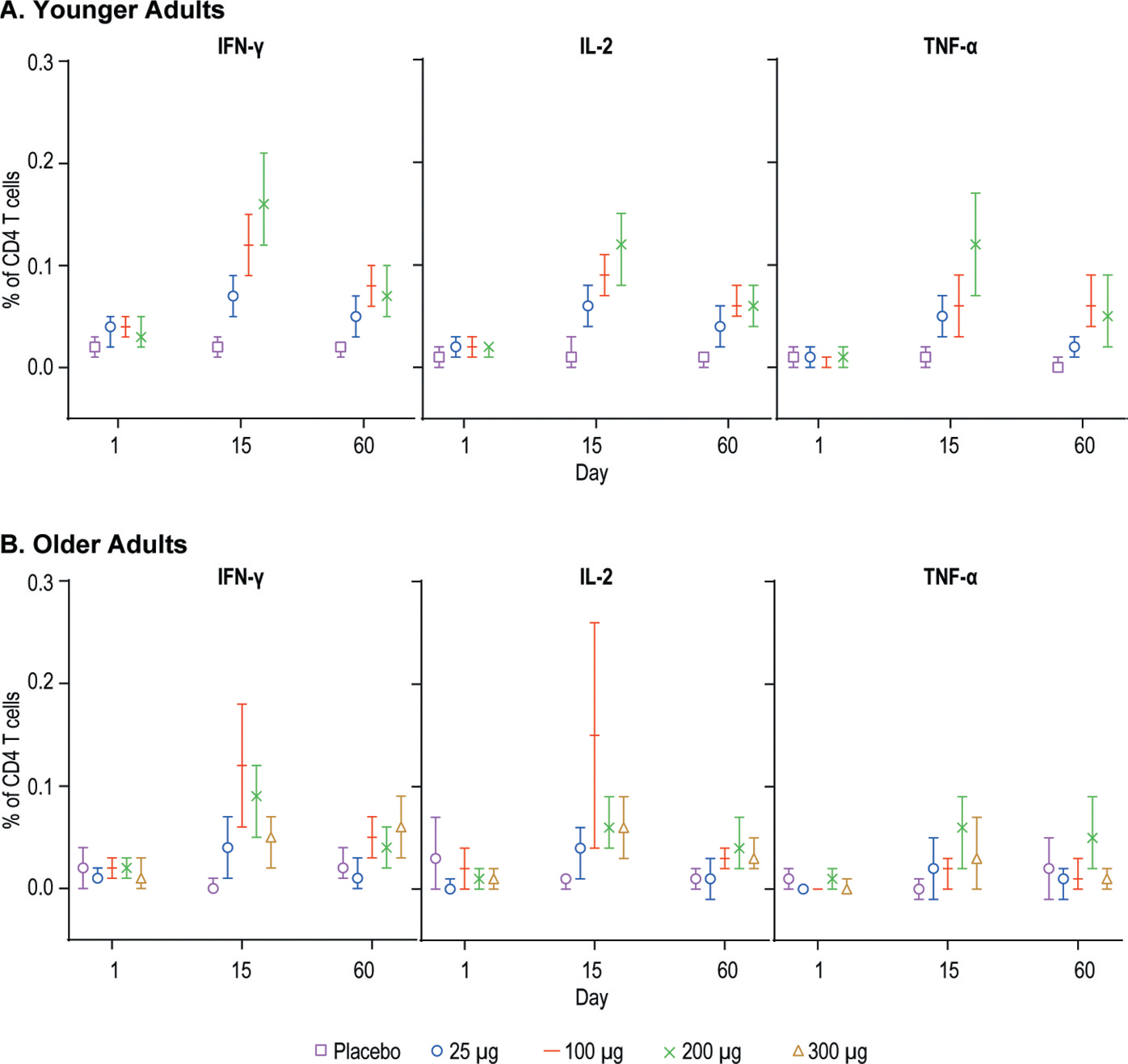 圖7 mRNA-1777 (V171) 胞內(nèi)細(xì)胞因子檢測(cè)(FACS,A 年輕人,B老年人)[5]