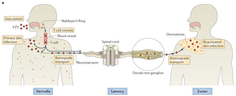 [2] Zerboni L, Sen N, Oliver SL, Arvin AM. Molecular mechanisms of varicella zoster virus pathogenesis. Nat Rev Microbiol. 2014 Mar;12(3):197-210. doi: 10.1038/nrmicro3215.