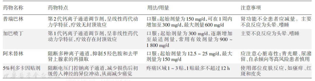 表2 帶狀皰疹后神經(jīng)痛的一線治療藥物[1]