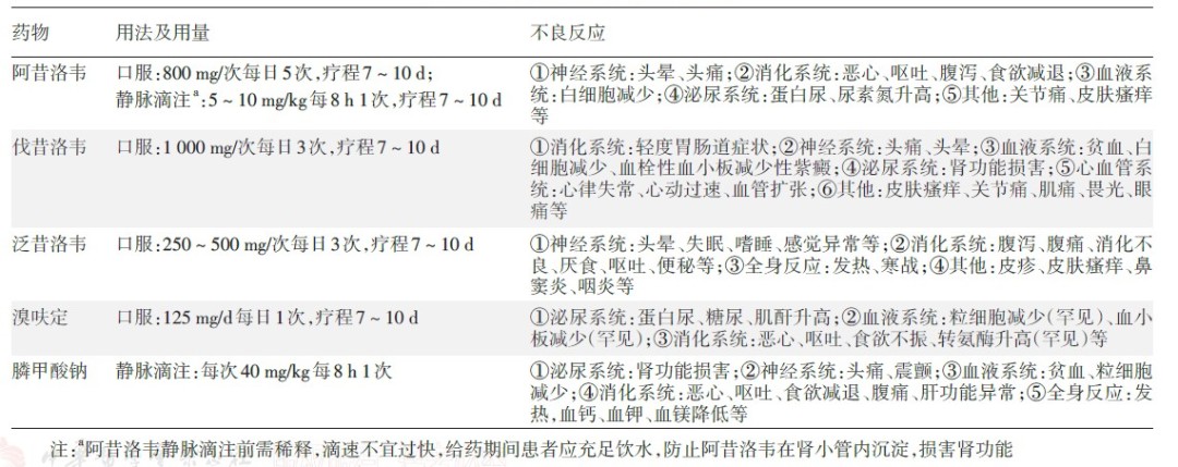 表1 治療帶狀皰疹的抗病毒藥物[1]