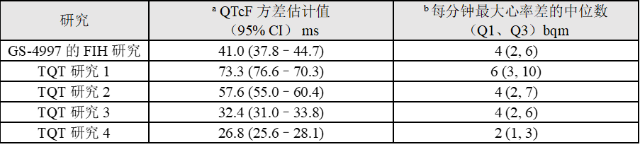 表4 CDE指導原則及GS-4997FIH研究中C-QTc分析