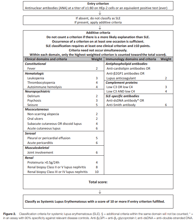 圖4 2019年EULAR與ACR聯(lián)合發(fā)布的SLE分類(lèi)標(biāo)準(zhǔn)