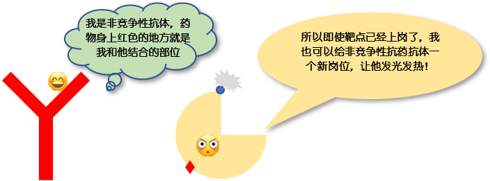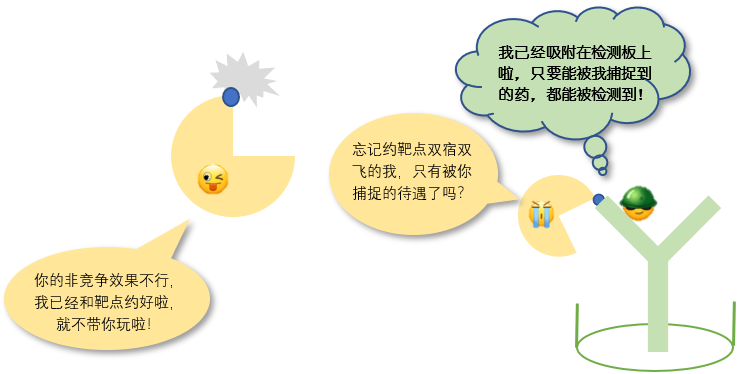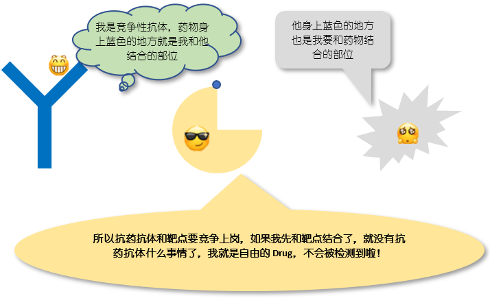 檢測(cè)游離的藥物,通常采用競爭性的抗藥物抗體,即該抗體結(jié)合藥物的位點(diǎn)和藥物識(shí)別靶點(diǎn)的位點(diǎn)一致或是存在空間位阻。