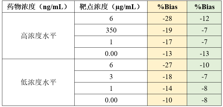 對(duì)于檢測(cè)總的藥物濃度的PK項(xiàng)目而言,非競爭性抗體的性能決定了方法的靈敏度。一旦抗體的非競爭性效果不好,那結(jié)合了靶點(diǎn)的藥物就不能被捕獲或者是檢測(cè)。