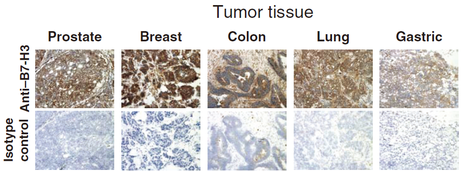 B7-H3在正常組織和部分腫瘤中的表達示例