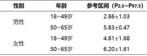 注:我國九省(湖北、河南、廣東、吉林、山東、山西、江蘇、浙江、四川)20~60歲健康成人TBNK淋巴細(xì)胞參考區(qū)間的研究結(jié)果,供參考。