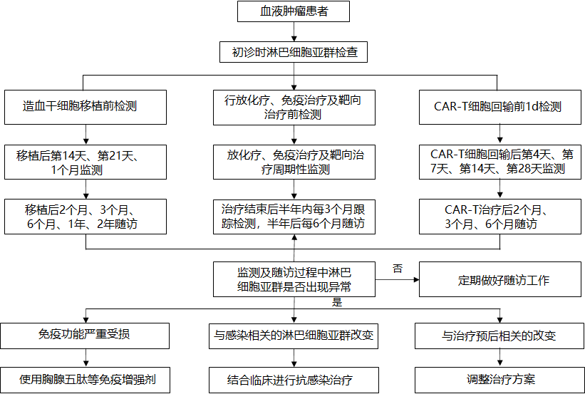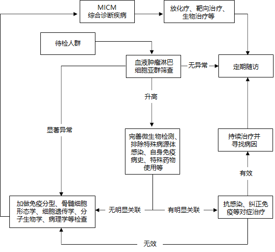 血液腫瘤淋巴細(xì)胞亞群篩查與隨訪路徑見下圖: