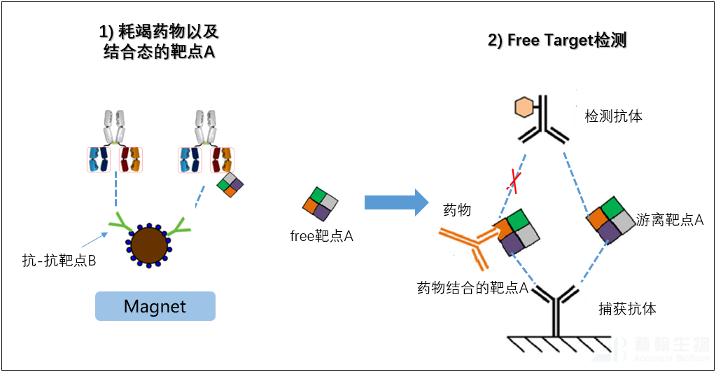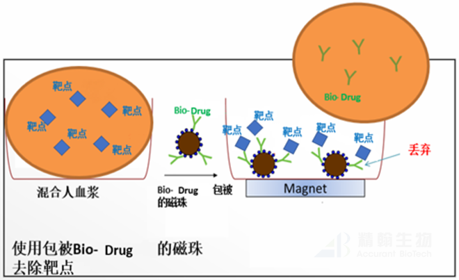 1)利用抗藥物另一端的抗體(抗-抗靶點(diǎn)B)或靶點(diǎn)B去耗竭樣品體系中的藥物以及藥物-靶點(diǎn)A;