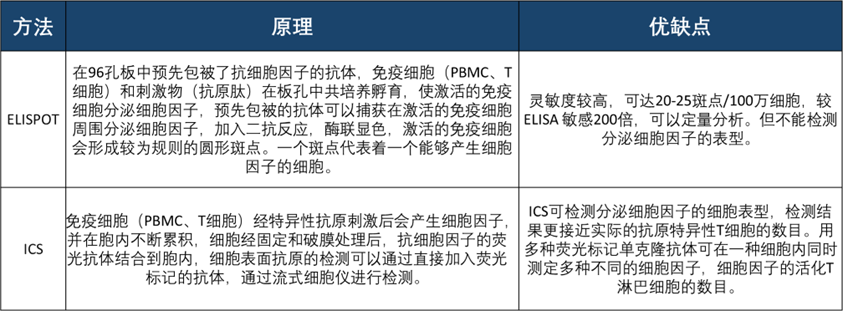 表1 疫苗細(xì)胞免疫檢測方法:ELISPOT和ICS