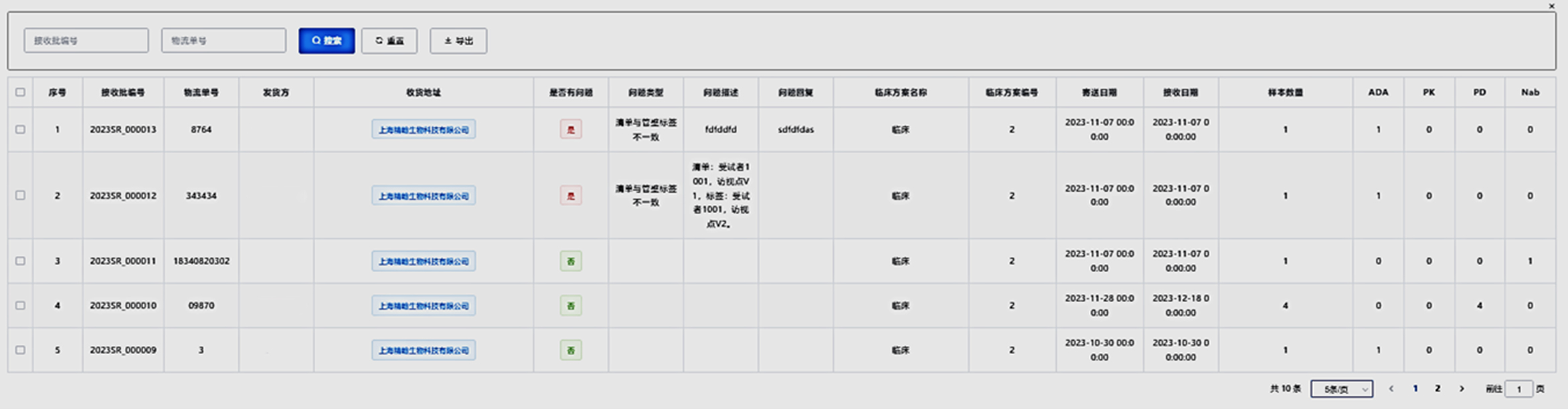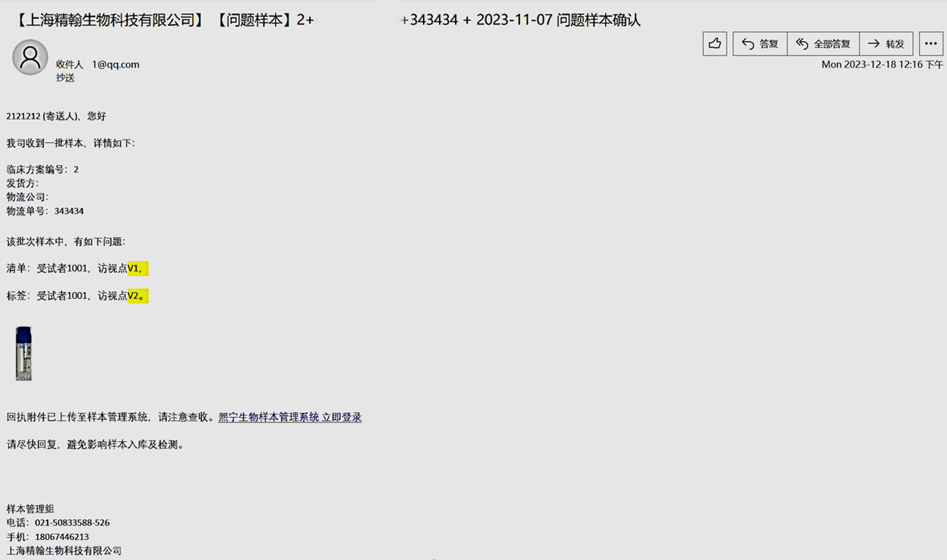 2.中心實(shí)驗(yàn)室收到的樣本難免有一些需要確認(rèn)的問題,比如標(biāo)簽與寄送清單不一致。這些問題直接關(guān)系到樣本的識別,進(jìn)而可能影響分析結(jié)果的準(zhǔn)確性,因此對這些問題的追蹤非常重要。然而,申辦方很難全面地、實(shí)時(shí)地查看這些問題以及對問題的回復(fù)。