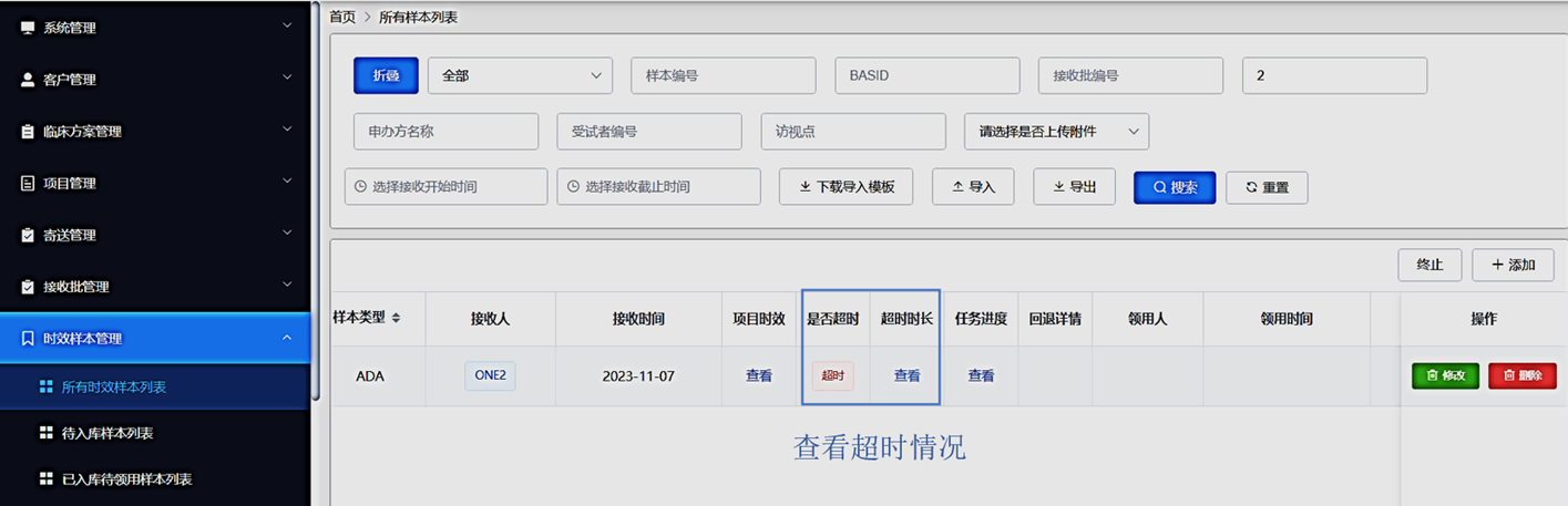 2.系統(tǒng)中可以實(shí)時(shí)地,直觀地看到某一個(gè)臨床試驗(yàn)下所有運(yùn)單一覽表。可導(dǎo)出,亦可通過篩選快速查找。