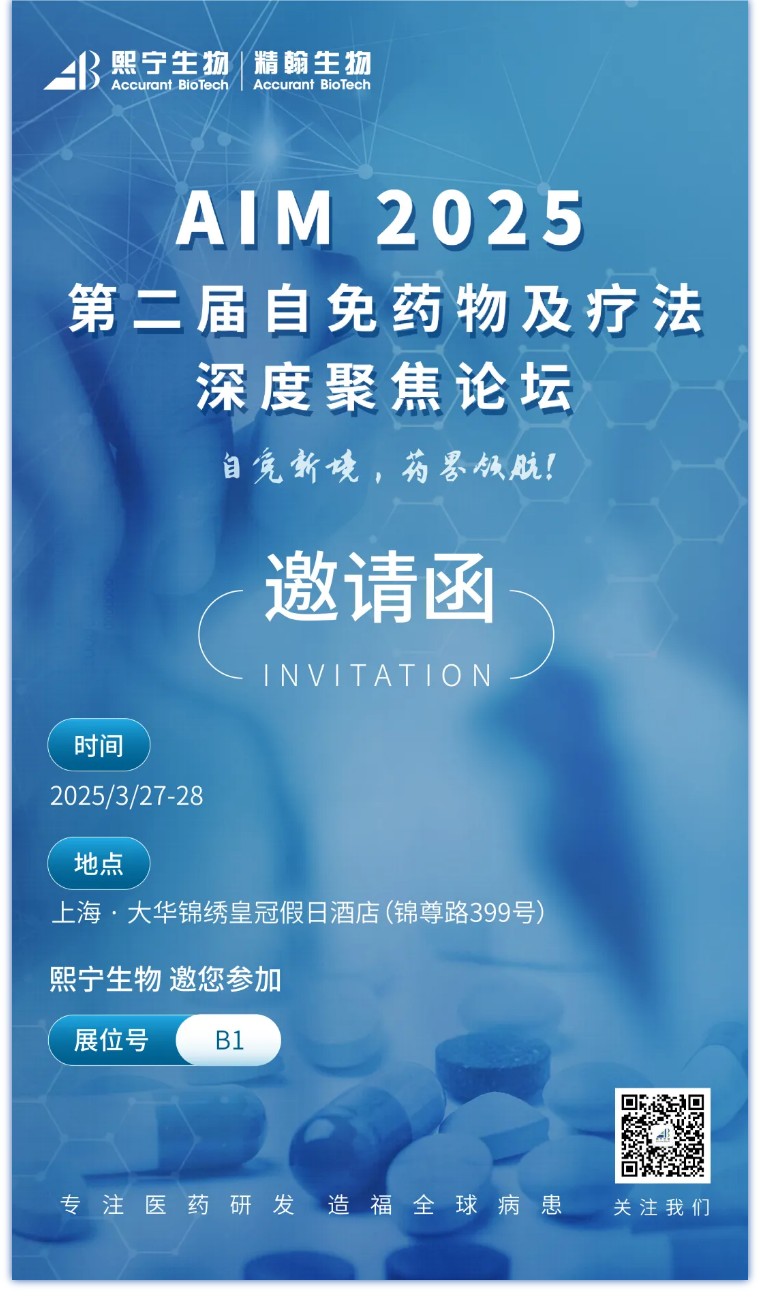 AIM第二屆自免藥物及免疫療法深度聚焦論壇匯聚了70+行業(yè)大咖,旨在探討自免藥物研發(fā)的最新動態(tài)、成功案例與未來機(jī)遇。通過分享創(chuàng)新思路和研究成果,會議將促進(jìn)合作與交流,助力自免藥物領(lǐng)域在未來實現(xiàn)更大突破,為患者帶來更有效的治療選擇。