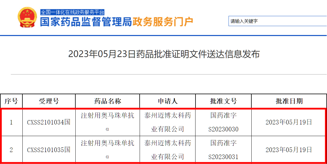 5月23日,中國(guó)國(guó)家藥品監(jiān)督管理局網(wǎng)站公示