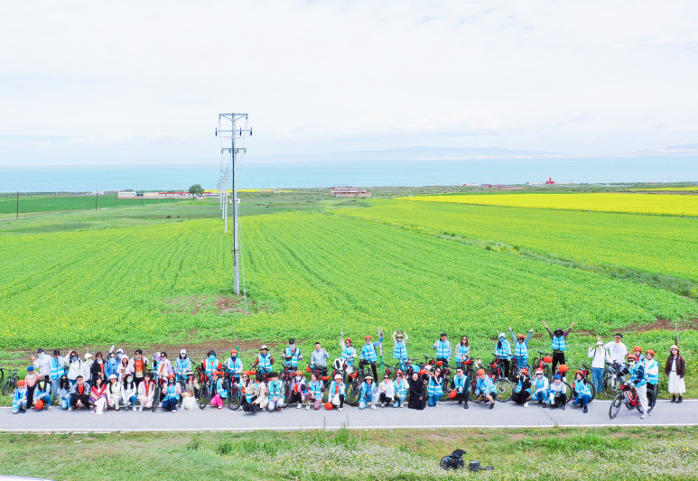 目之所及,皆是美景。湛藍(lán)的天空,清澈的湖泊,盎然生機(jī)的草原,大片盛放的油菜花和點(diǎn)綴其中的牛羊,360°沉浸其中,熙寧團(tuán)建之行的首場團(tuán)隊(duì)PK賽“‘騎’心協(xié)力青海湖” 騎行挑戰(zhàn)賽在這里拉開帷幕。
