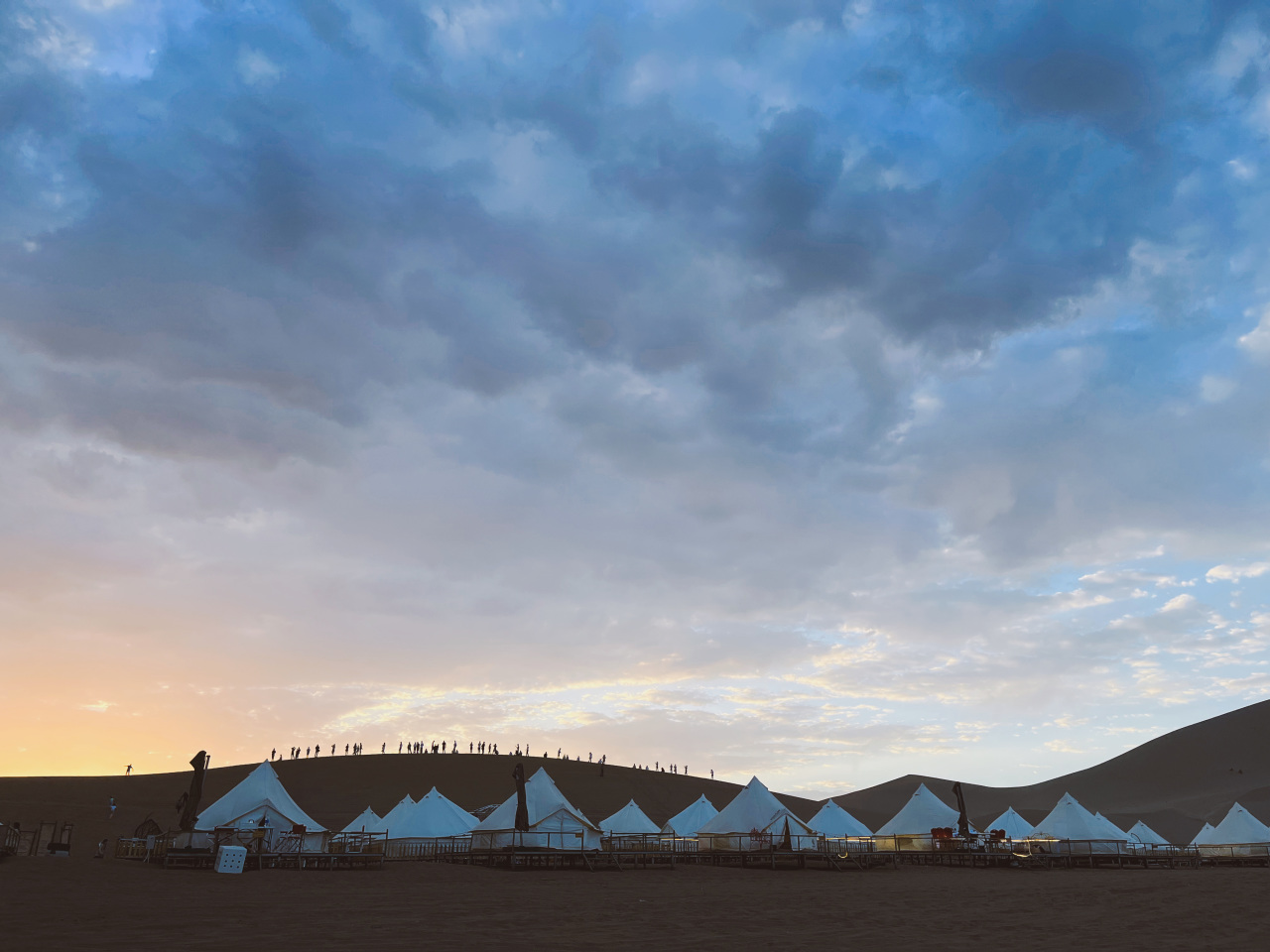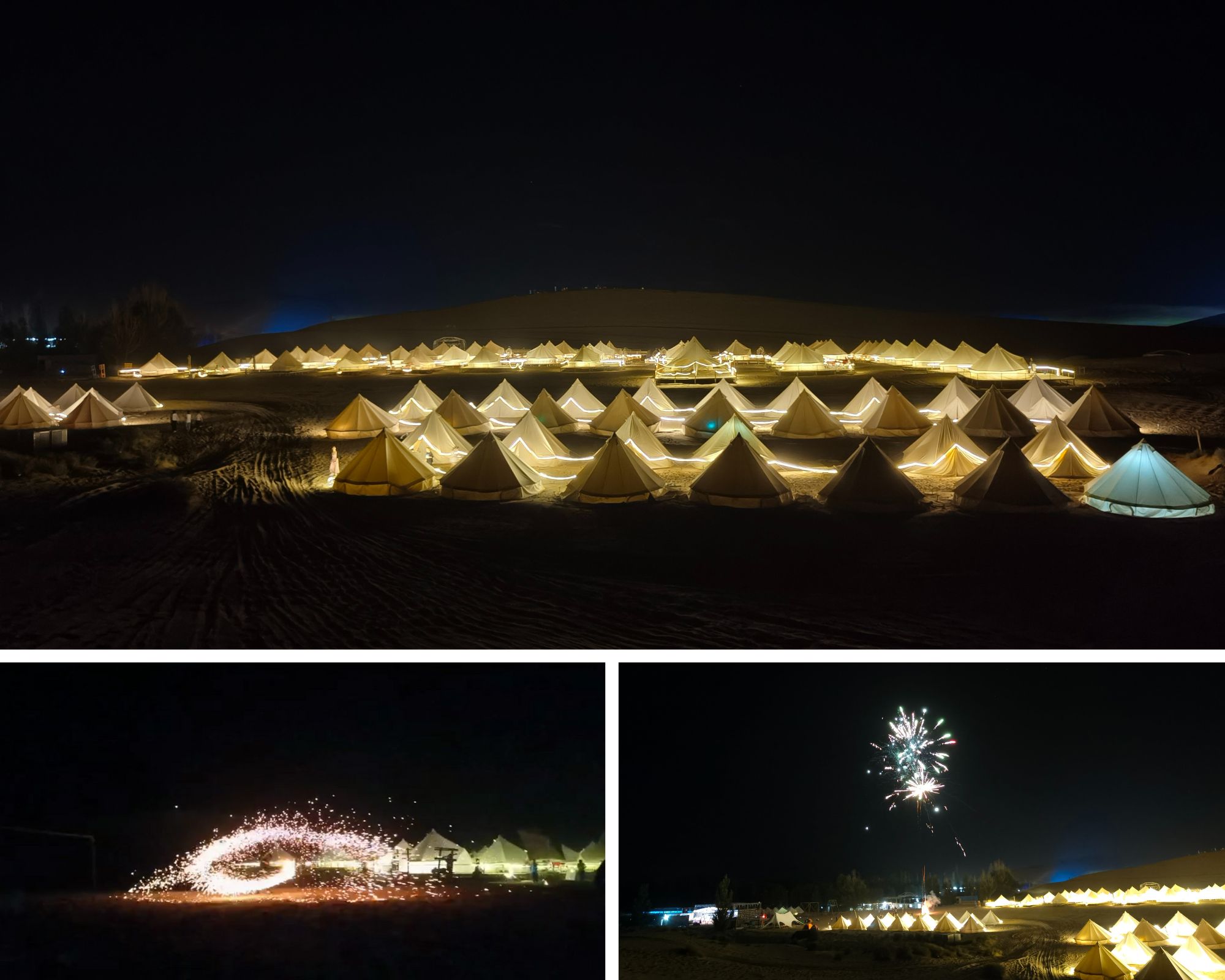 與前兩站山川湖泊的自然景觀不同,這里更加直接的體現(xiàn)天與地的碰撞,一望無際的敦煌沙漠戈壁,一波波熱浪襲來,低語神秘而絢彩的西域故事。沙漠營地、篝火晚會、鐵花四濺、繁星入夢。