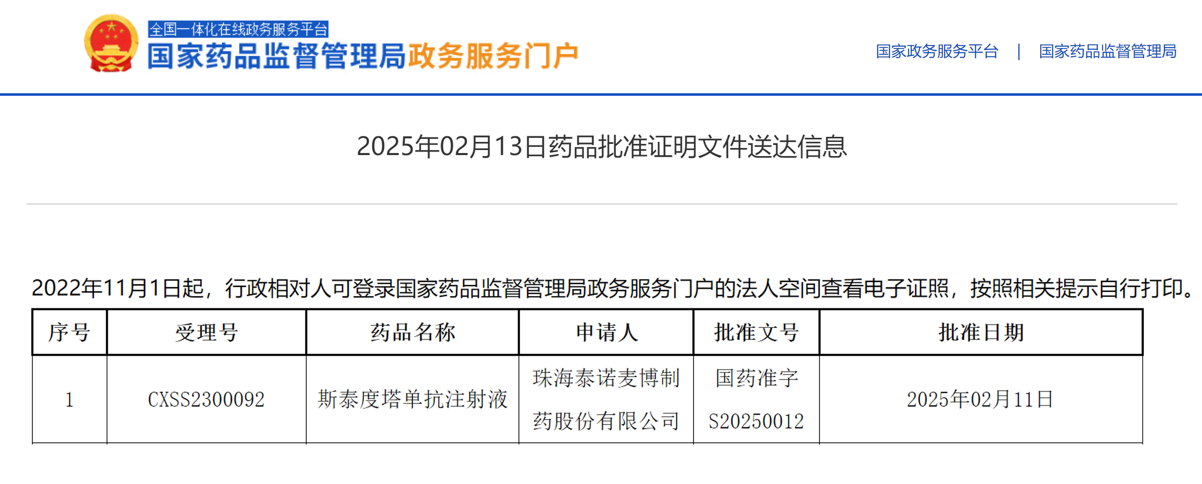 [1]新替妥?說明書,國家藥監(jiān)局批準(zhǔn)斯泰度塔單抗注射液上市.